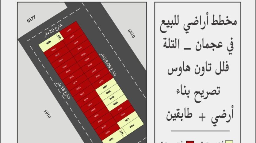 متاح أراضي سكنية أول مالك بمخطط يضم عددا من الأاضي السكنية بحي التله 2 بإمارة عجمان بين مدرسة الحكمة ومدرسة هابيتات وقريبه من مدرسة اكاديمية عجمان ومركاز مول والمستشفى السعودي الألماني وعلى بعد دقيقتين من شارع الشيخ محمد بن زايد وفقط 20 دقيقة لأمارة دبي وبالقرب من جميع المرافق والخدمات مثل مطاعم وكافتريات ومساجد ومحطة بترول مخطط التله يضم مجموعه من الأراضي السكنية مساحات ٢١٨ متر (٢٣٤٦ قدم) تصريح بناء فلل سكنية متلاصقه تتكون من أرضي + طابقين بسعر 660 ألف درهم للكاش. المخطط يتميز بالشوارع المجهزة والأراضي جاهزه للبناء مباشرة متبقي فقط اراضي قليلة للبيع بالمخطط ملحوظة : التملك حر لجميع الجنسيات بصك ملكية من حكومة إمارة عجمان وبدون اية ضرائب او رسوم سنوية وبدون فترة محدده للبناء.